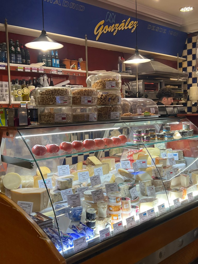 Casa González – founded in 1931, it has a store in the front that sells cheese, wine and delicatessen products and restaurant in the back. I ended up coming here 3 times in a week as the food was very good, affordable and friendly staff. I opted for the toasts – **many of the Madrid tapas tours come by here. I saw several rotating in and out each time i was there, so you know it must be good!
