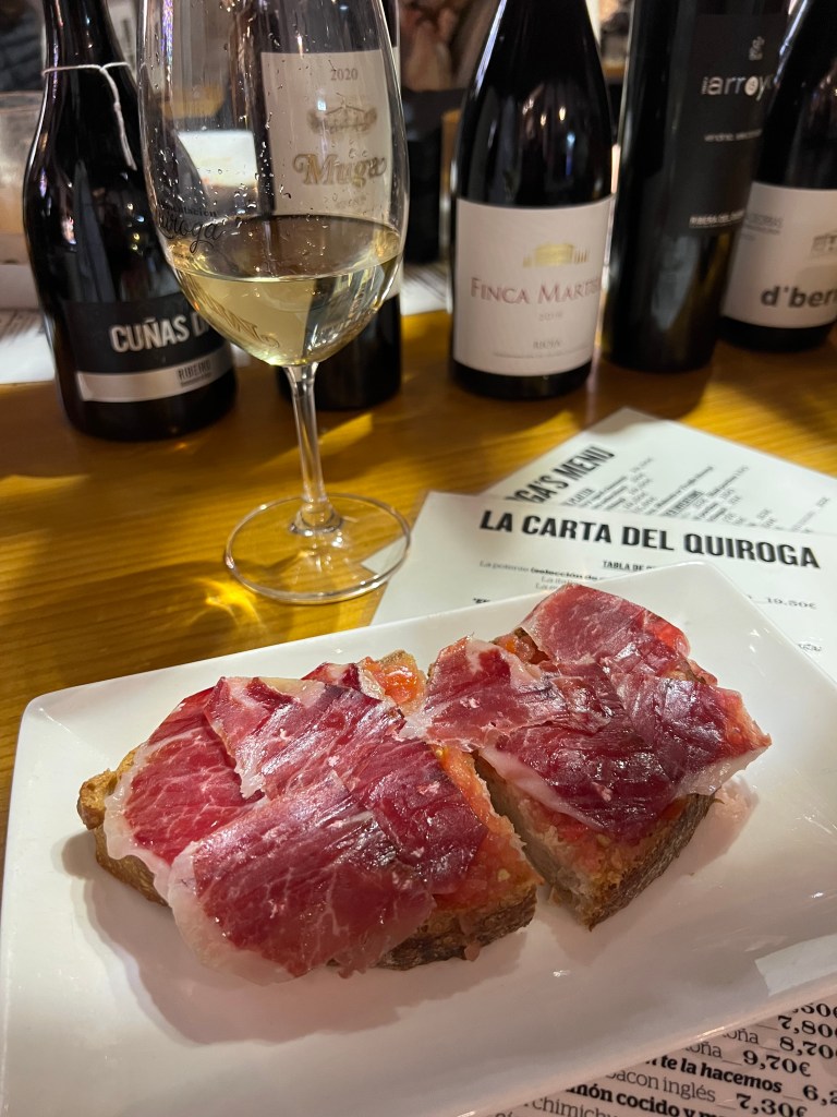 Alimentacion Quiroga – great vibe to enjoy some wine and food. I stopped in here Christmas Eve for wine and jamon y tomato toast. Super fast paced place with a mix of locals and tourists. I came back the next day for the foie with white truffle honey toast.