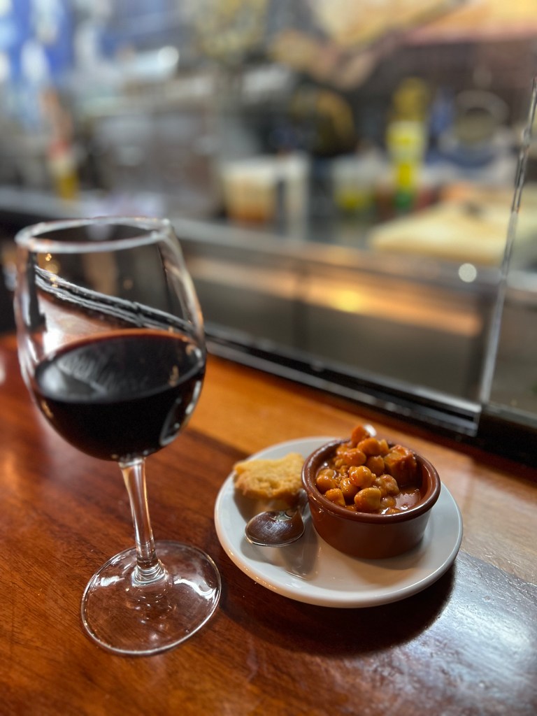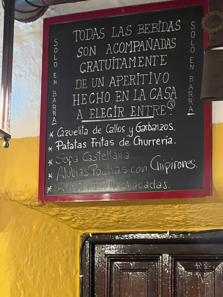 El Lacón – cozy, vibrant atmosphere where the bar was always a few deep! With each drink, you get to pick a free tapas to enjoy. **Madrid tapas tours also stopped here.